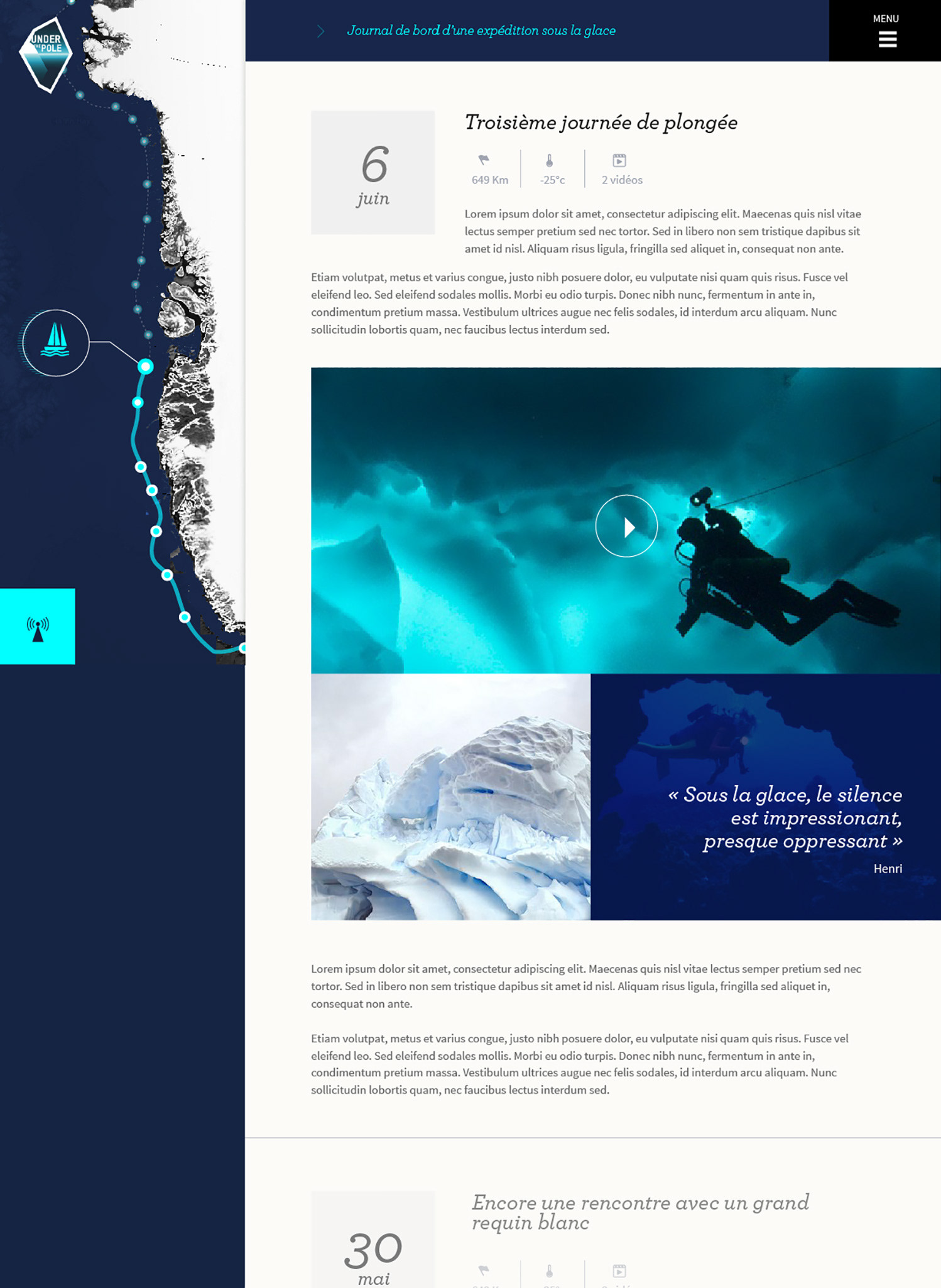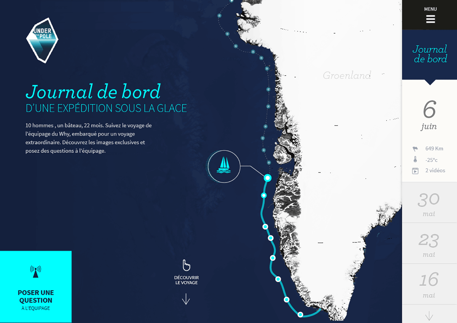 Proposition for the website of "Under The Pole", a documentary about the exploration of the North Pole.