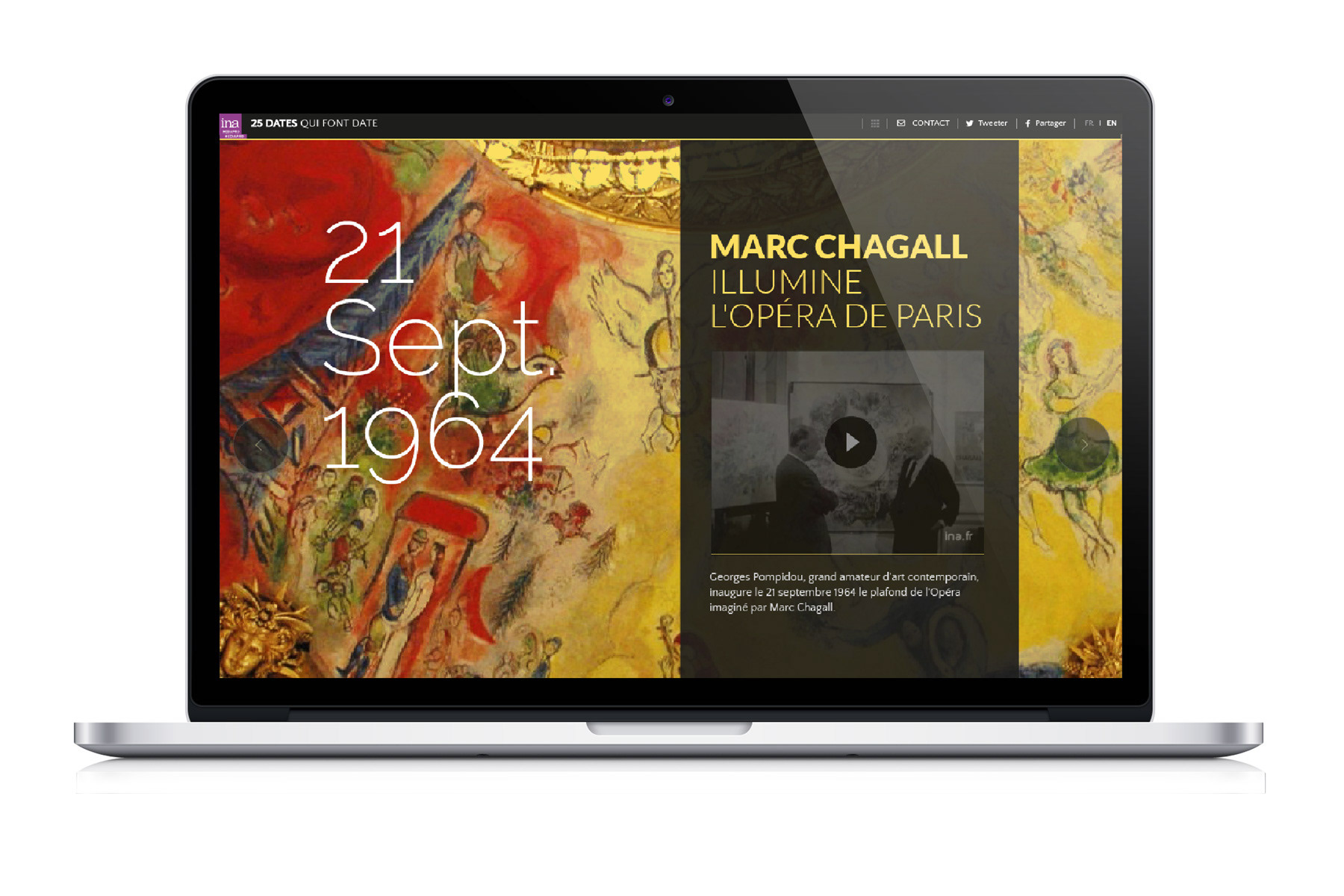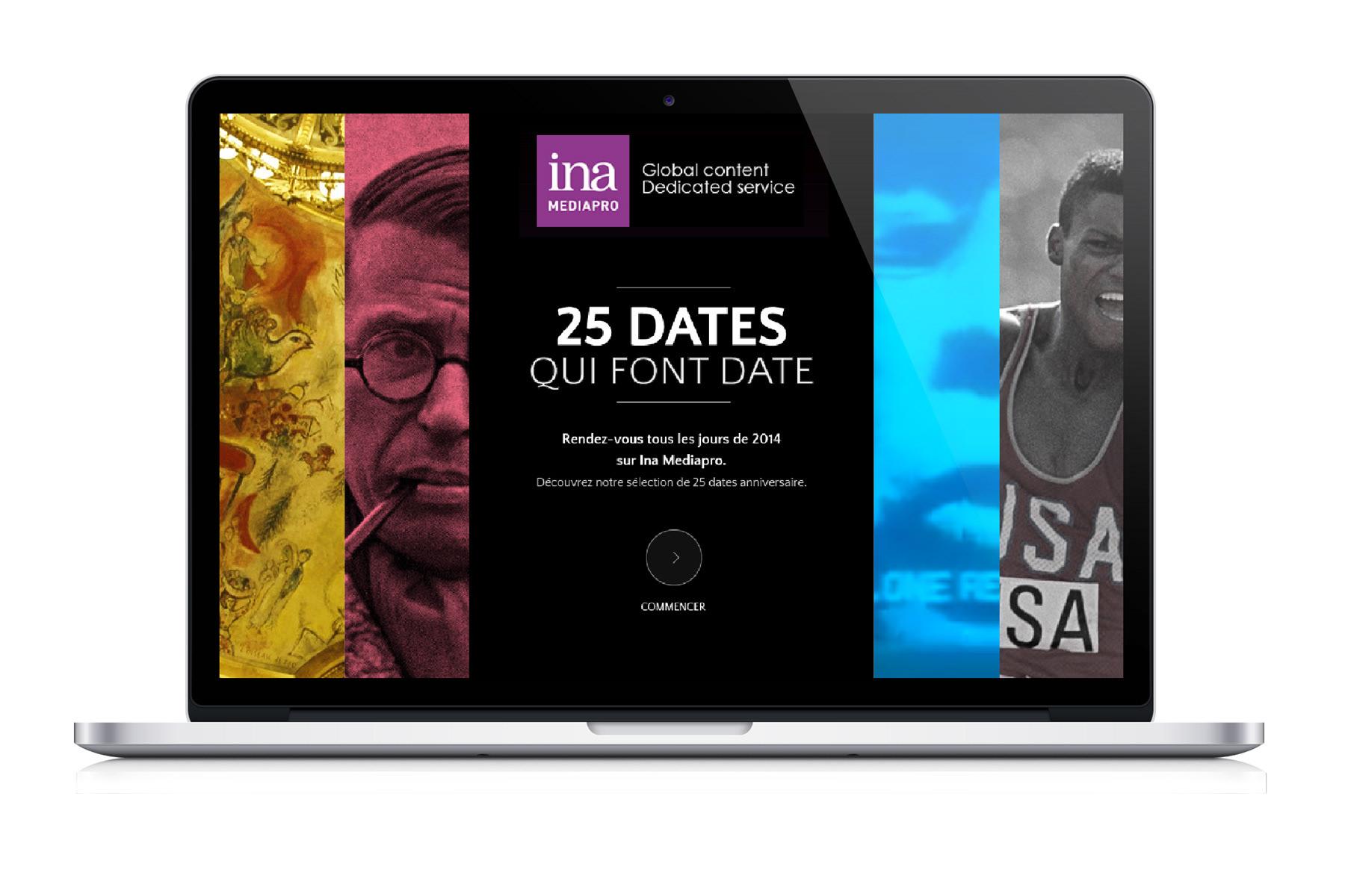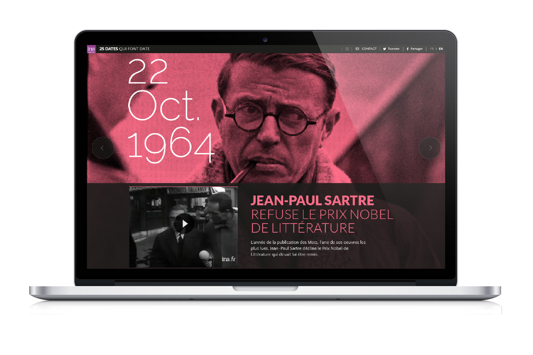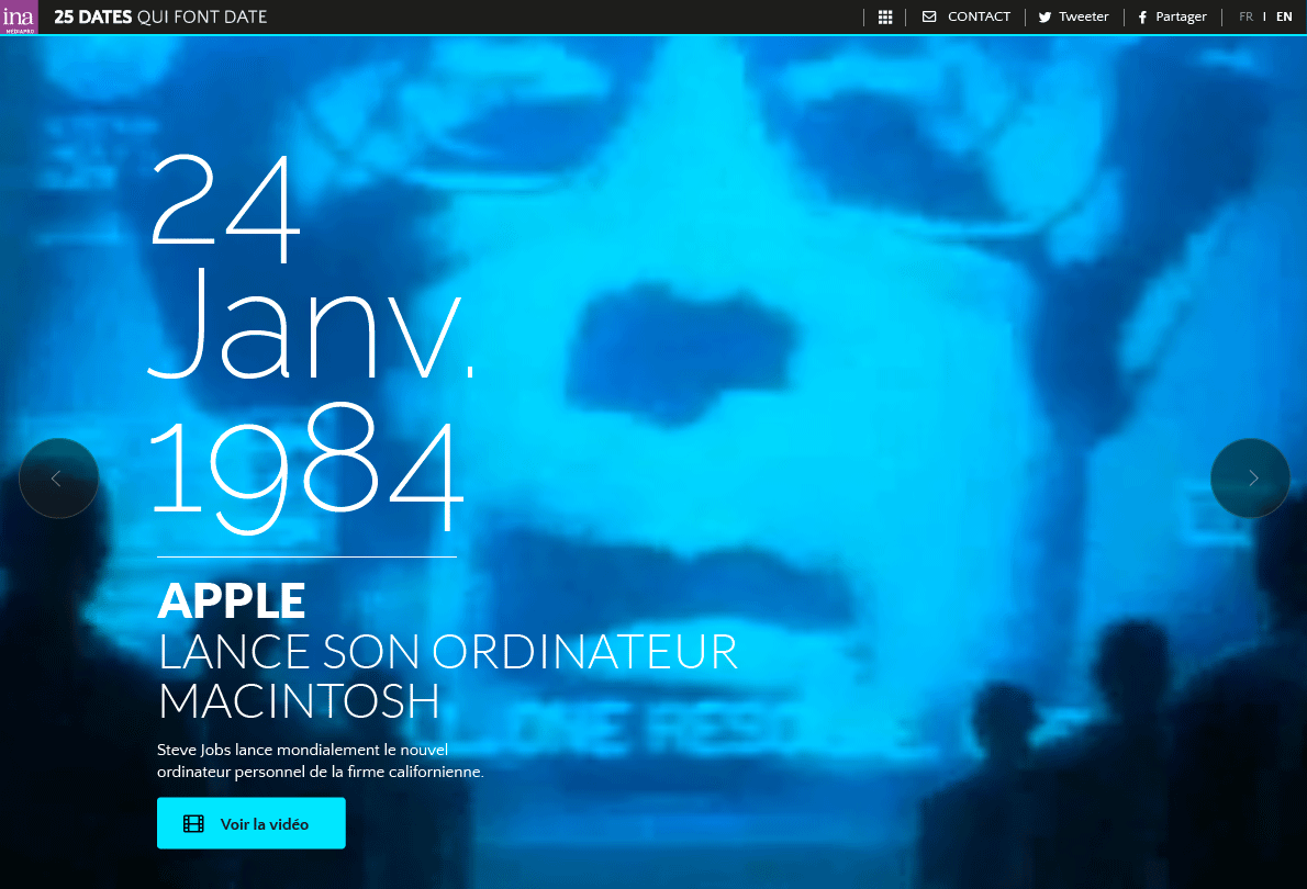 Design proposal for a commemorative website for the French Audiovisual Institute (INA).