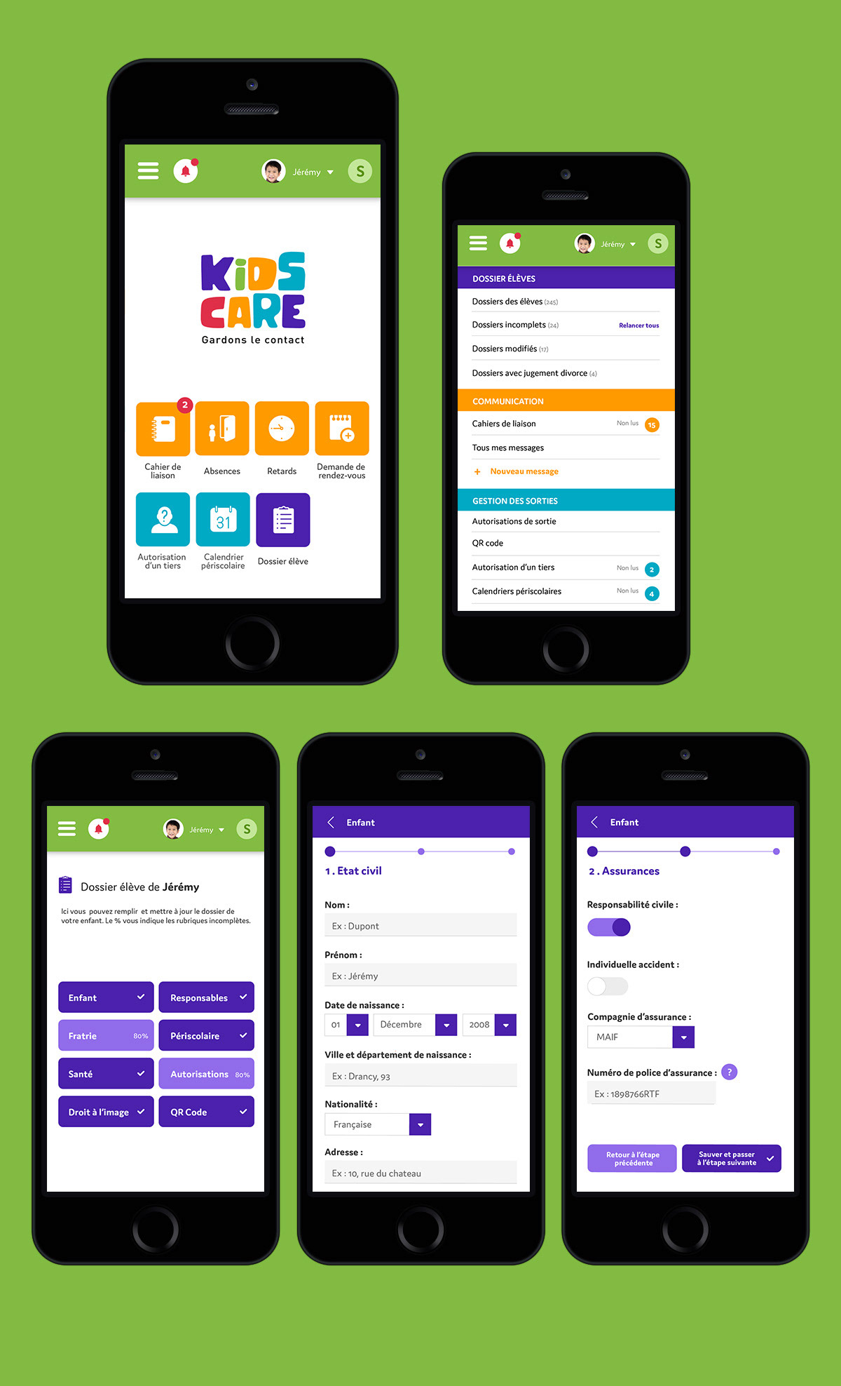 Design workshop and UX/UI for Kidscare, an application for teachers and parents to manage the presence of children at school and facilitate parent-teacher exchanges.