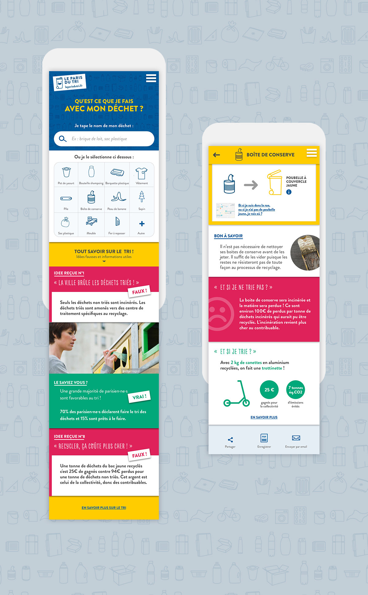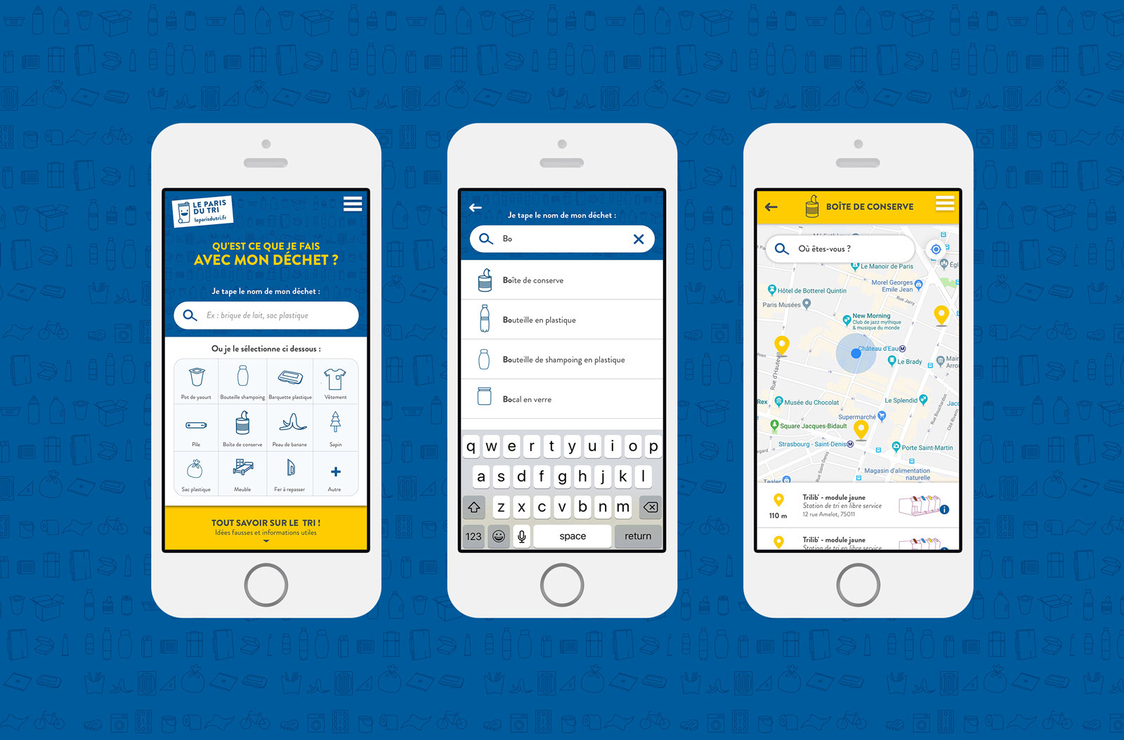 Design workshop and UX / UI design for "Le Paris du tri", an app to help Parisian citizens to sort their waste (prototype).
